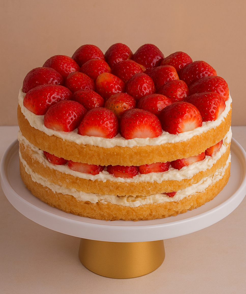 Nuestro clásico postre en capas de bizcochuelo de vainilla, crema chantilly y fresas naturales. Va cubierto con fresas y salsa de fresas. Por su suavidad, sabor y frescura es uno de los postres preferidos de todos en todas las épocas.